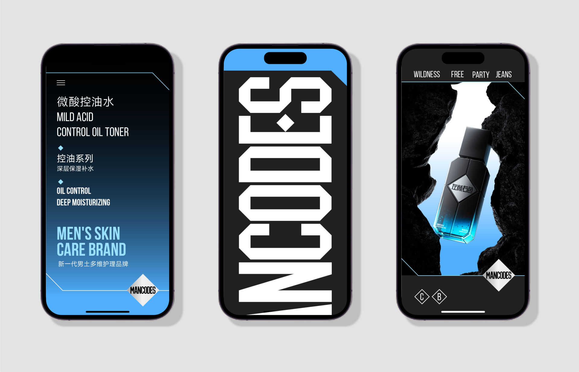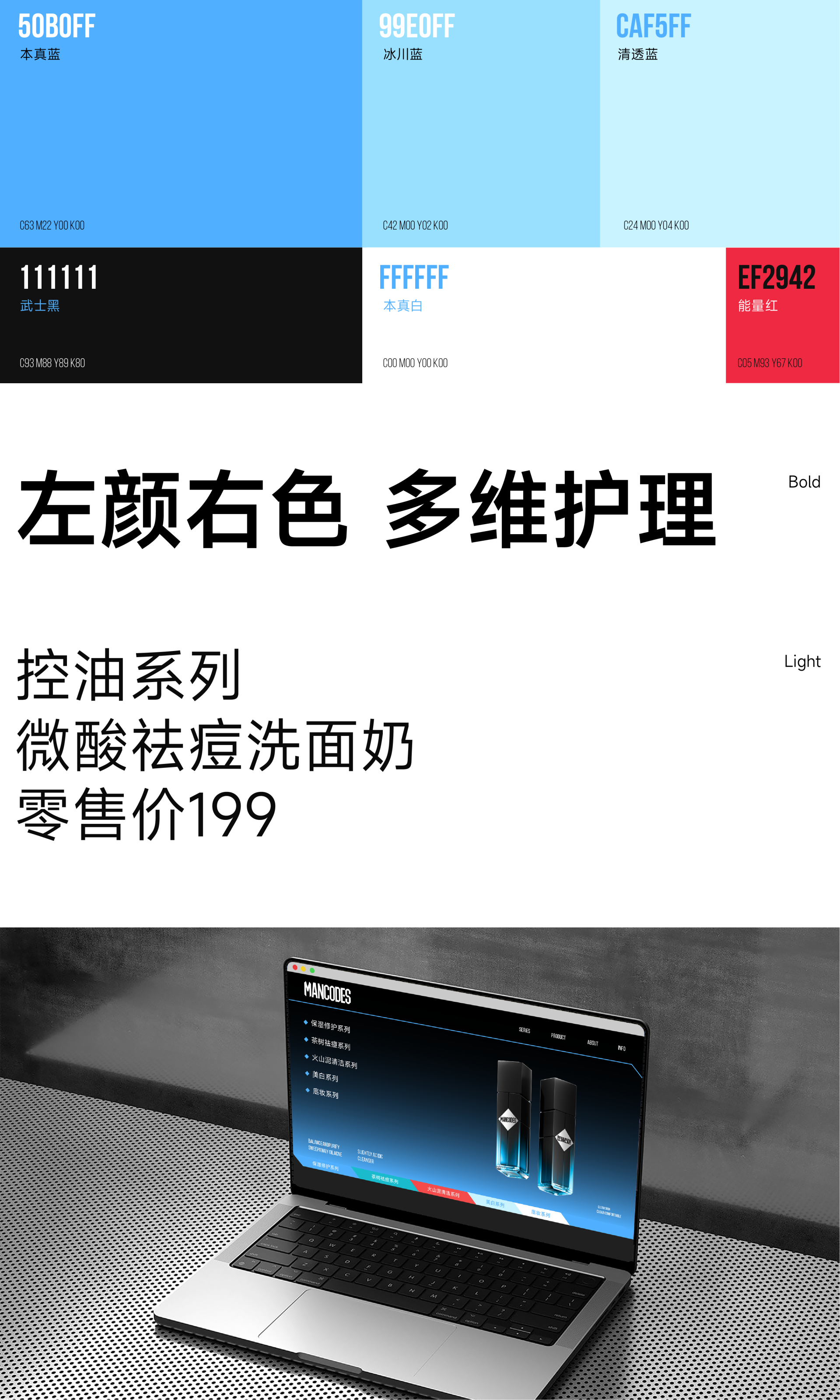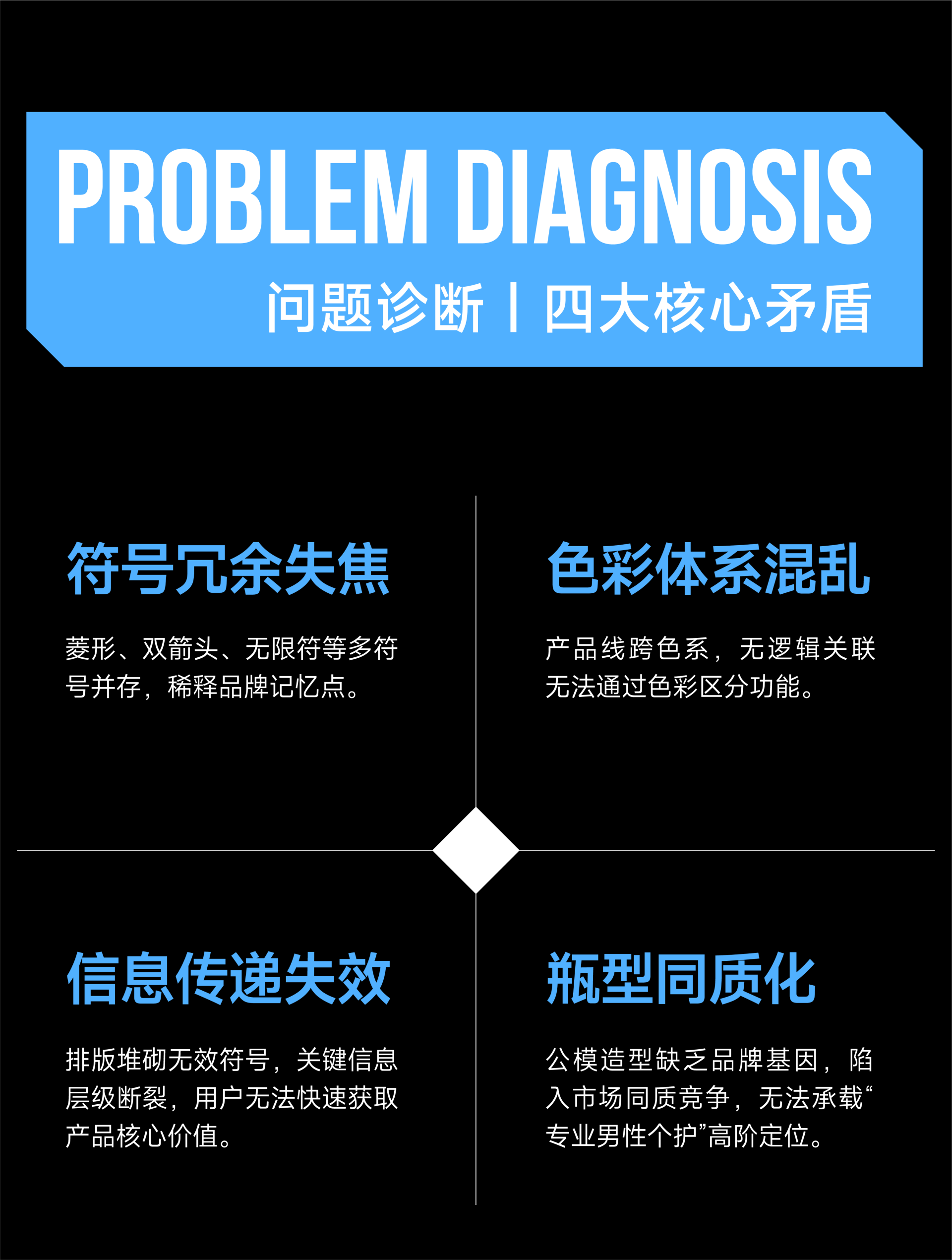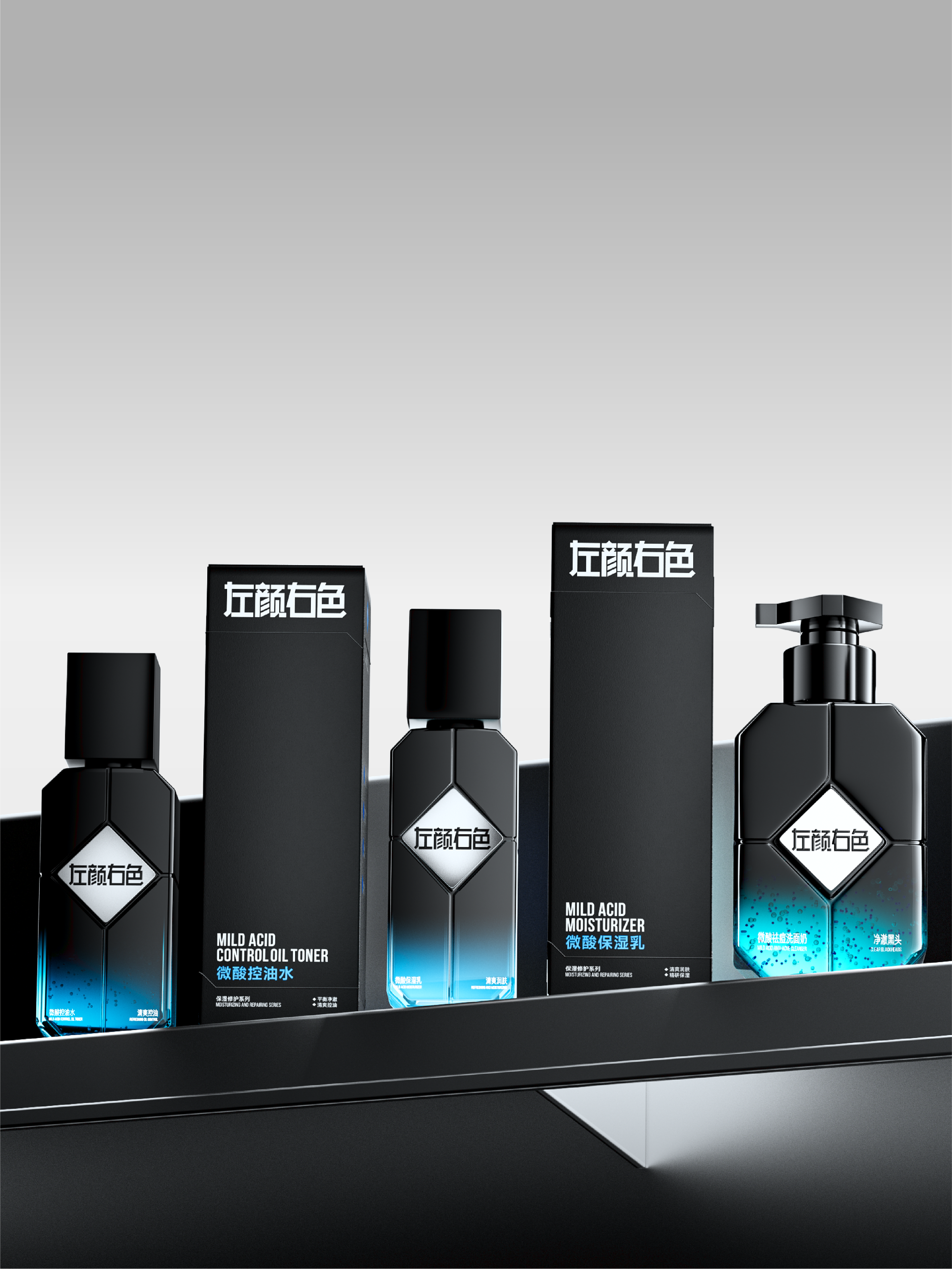 菱形科技重构男性个护空间对话,深度融合工业质感与多维空间逻辑,精准传递左颜右色"专业男性个护“的品牌形象。
