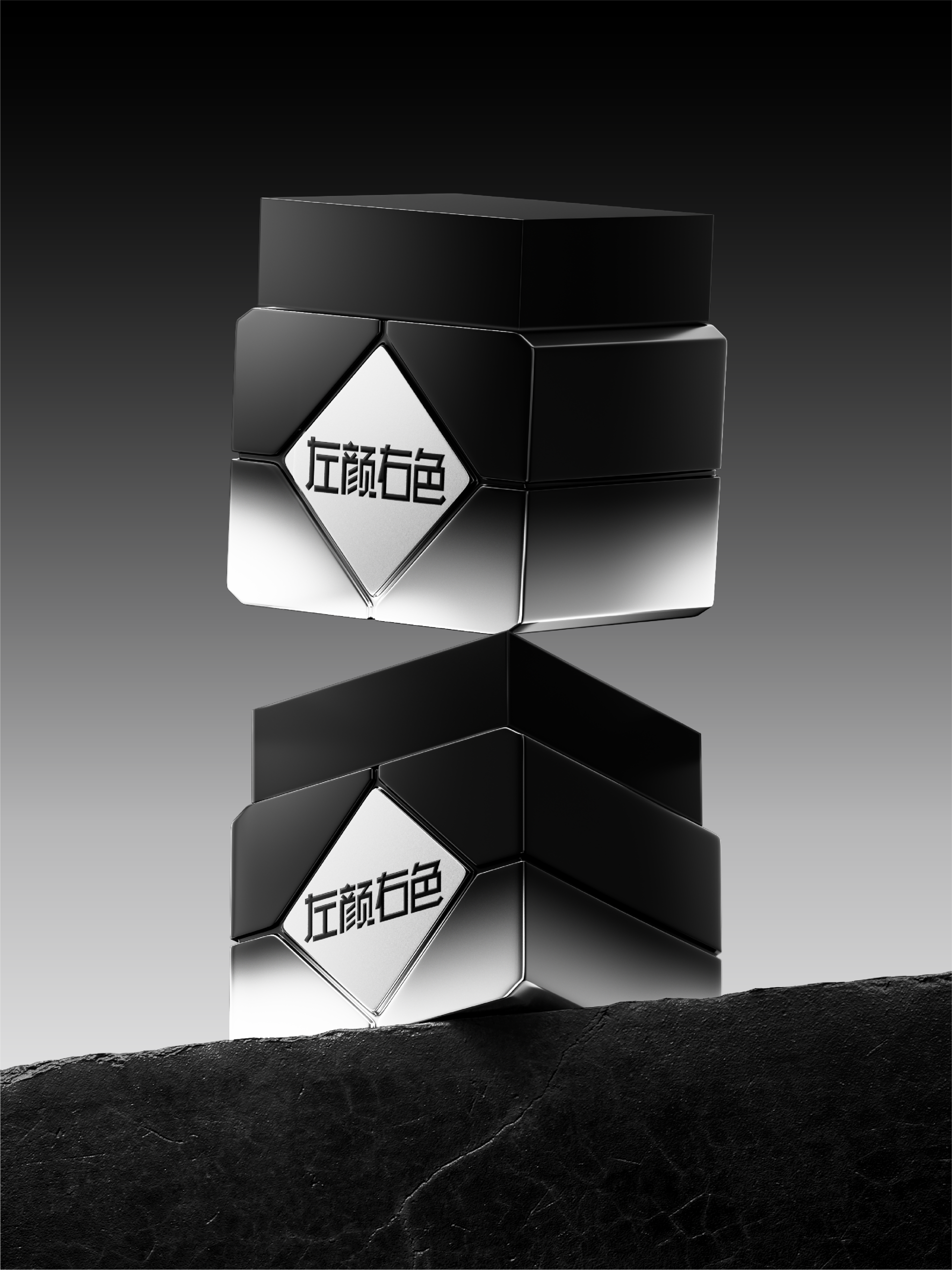从魔方中凝练多棱多面的立体切割语言,复刻其精密几何结构,构建瓶身刚劲有力的视觉符号。棱角为骨,隐喻男性坚韧性格,如刀锋般利落分明;镜面为魂,折射面呼应态度通透,在光影流转间彰显自信锋芒。